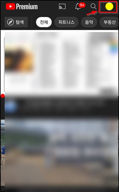 먼저 휴대폰에 유튜브 앱을 실행(다운로드 후 실행)하고 아래 과정을 수행합니다.