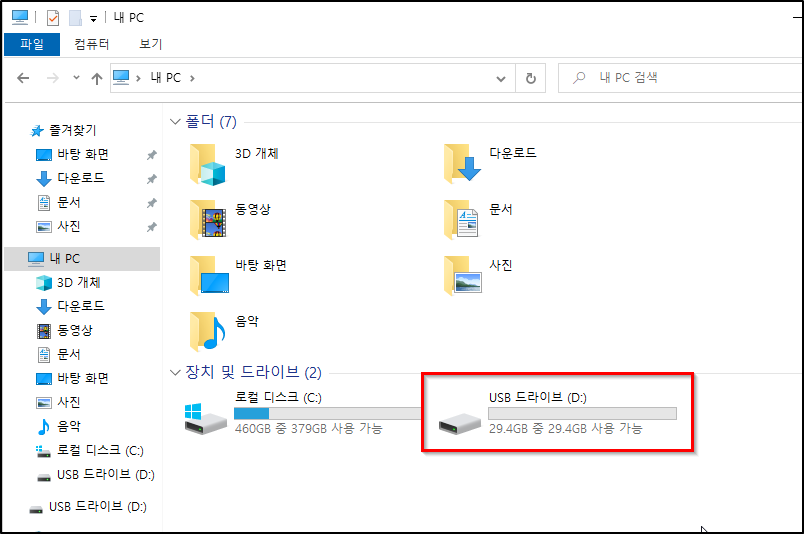 # 확인해보면 USB가 포맷된 것을 확인할 수 있습니다.