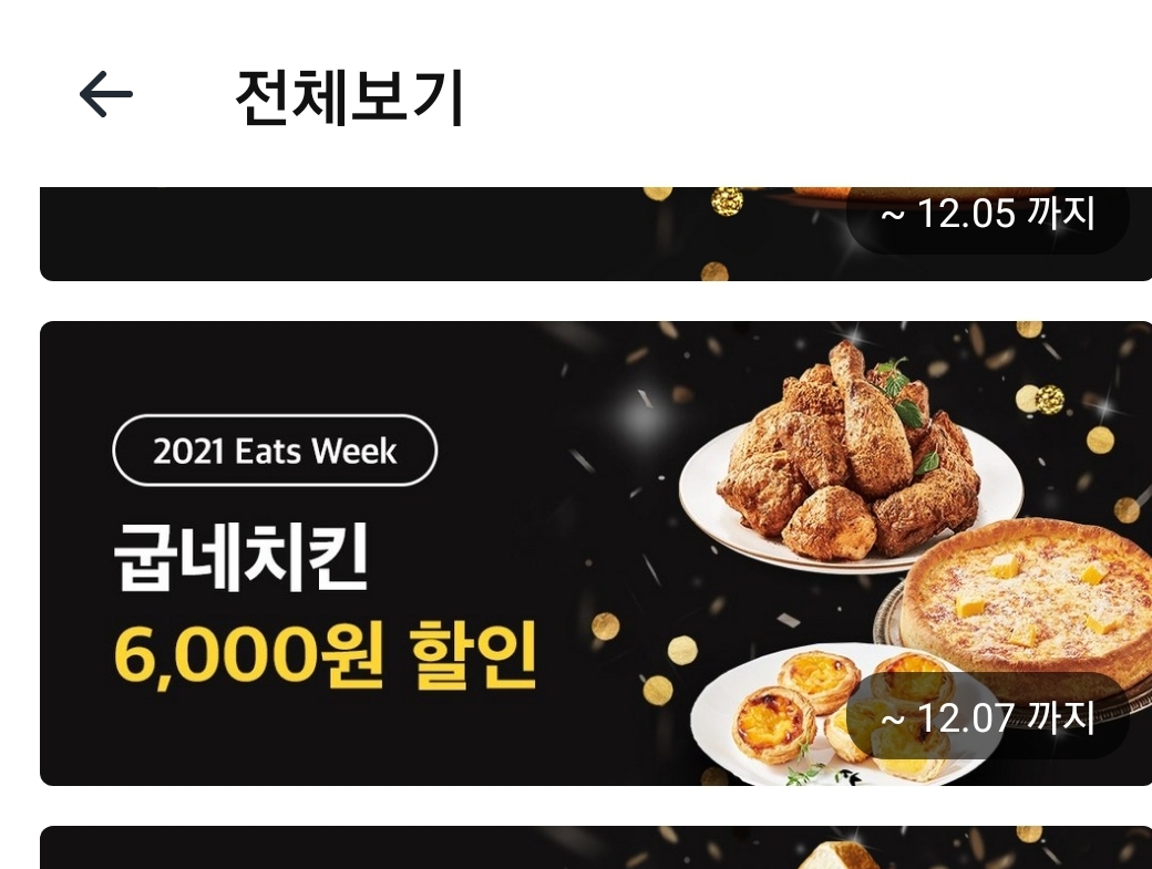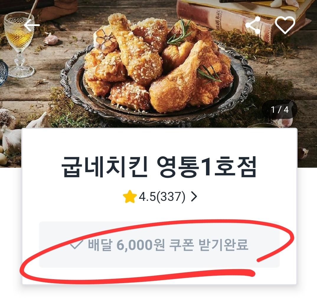 쿠팡잇츠 앱 > My 잇츠 > 진행중인 이벤트 > 굽네치킨 6천원 할인 > 쿠폰 받기