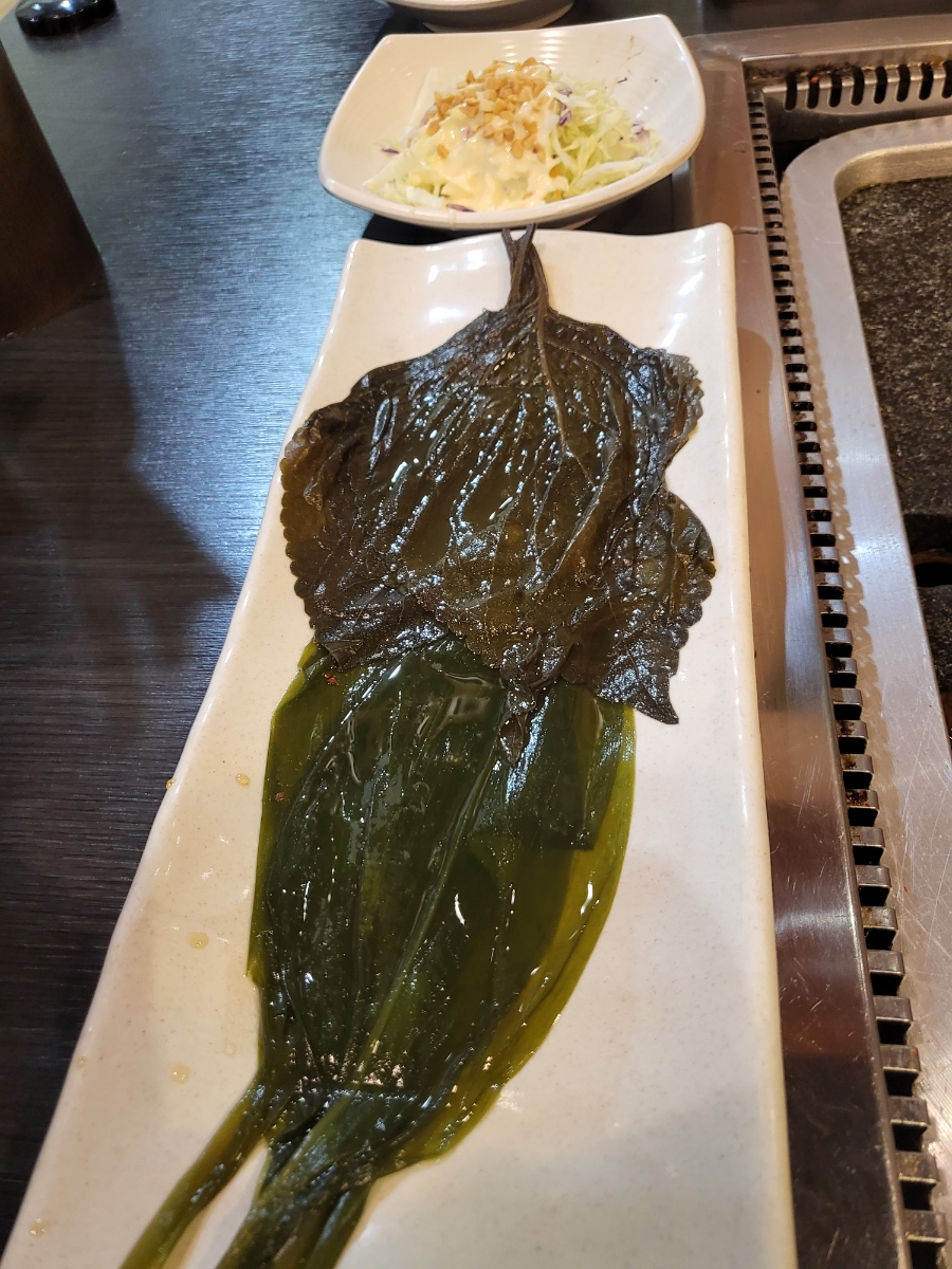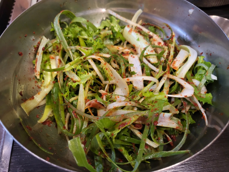 기본으로 찬이 나오는데 셀프바에서 기본찬 외 다른 쌈 채소나 마늘 등을 가져다 먹을 수 있어요~!