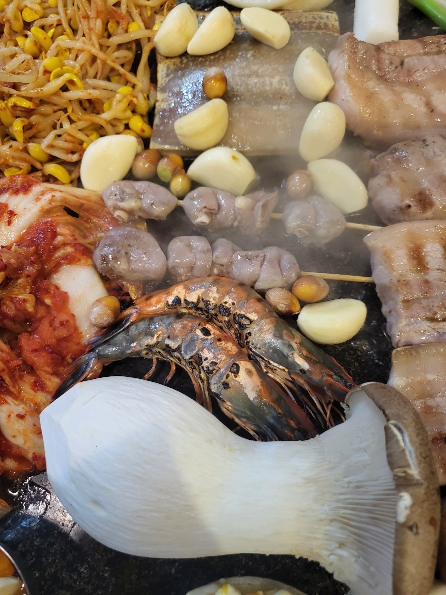 찐으로 삼겹살부터 새우 염통 껍데기 다 맛있습니다.. 이럴수가 있나 싶을 정도..