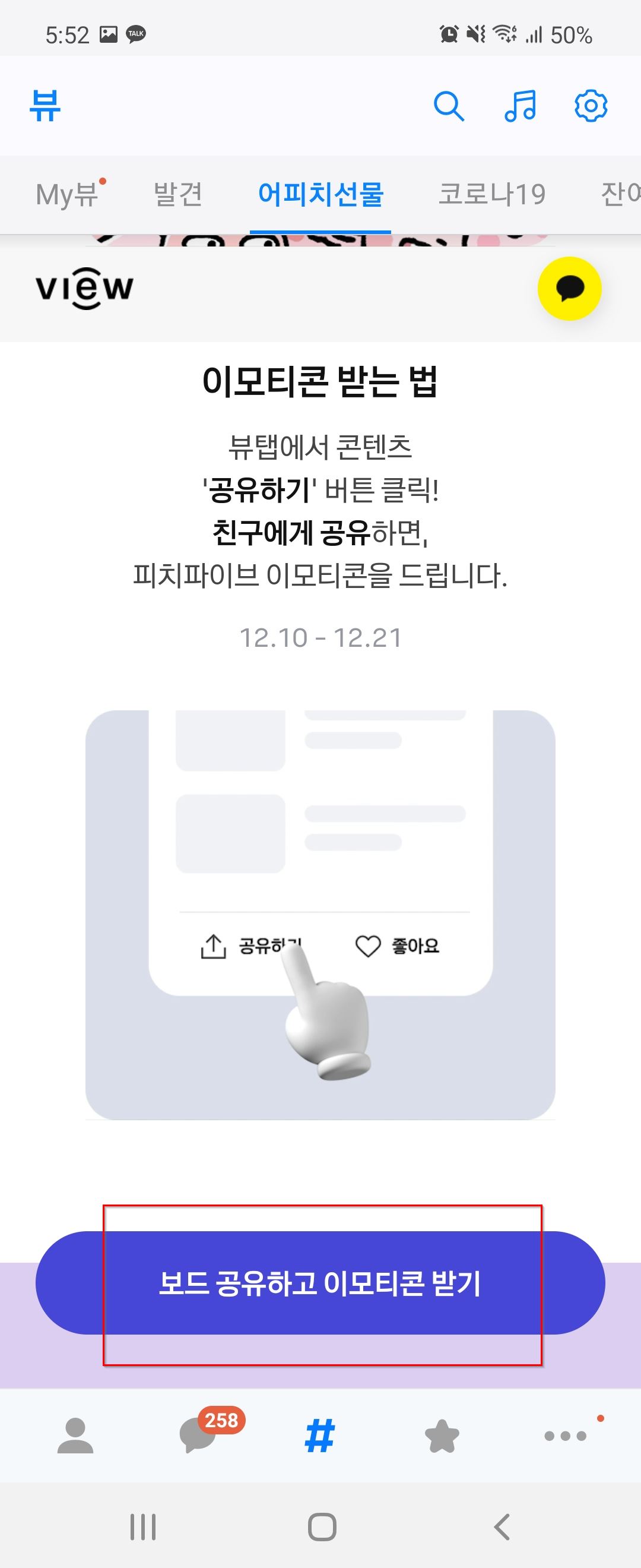 조금 기다리면 1~5분 안으로 카카오 뷰에서 이모티콘을 보내줍니다.