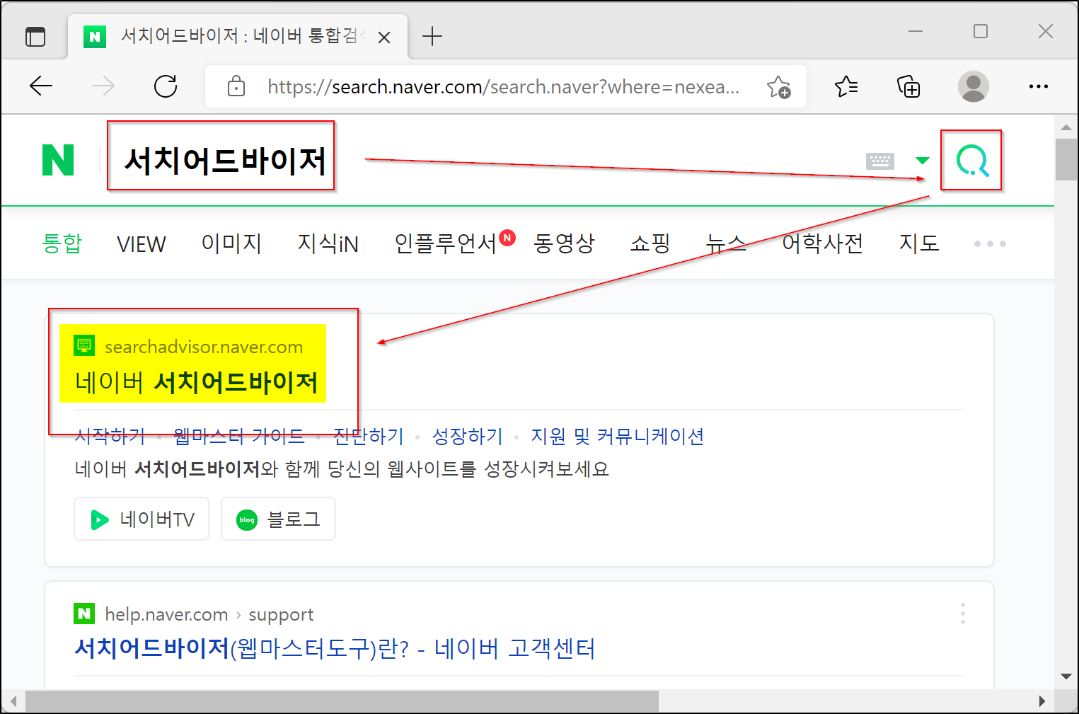 1. 네이버 검색창에서 서치어드바이저를 검색해서 접속합니다.