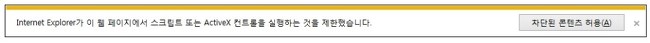 오프라인에서 작성한 HTML 문서등을 오픈할때 javascript 등이 있으면 위와 같이 '차단된 콘텐츠 허용'이 필요하다는 알림이 출력된다.