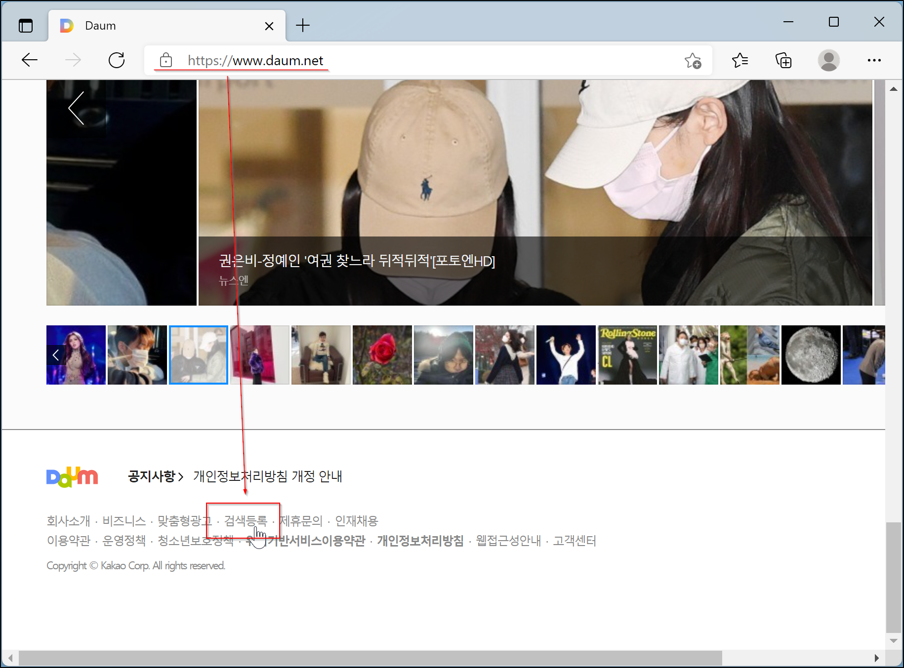 1. 다음(Daum)에 접속해서 페이지 맨 하단 '검색등록'을 클릭합니다.