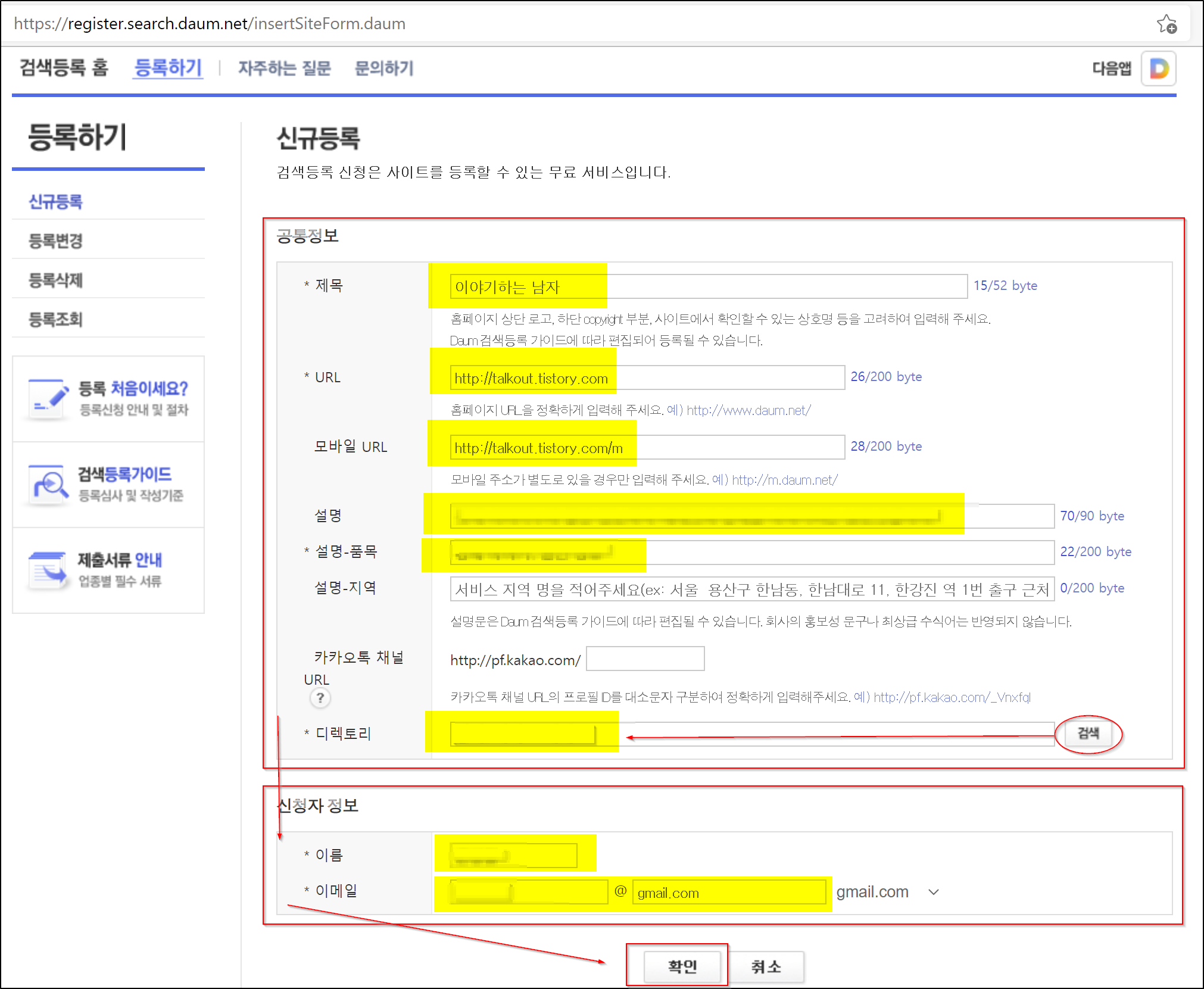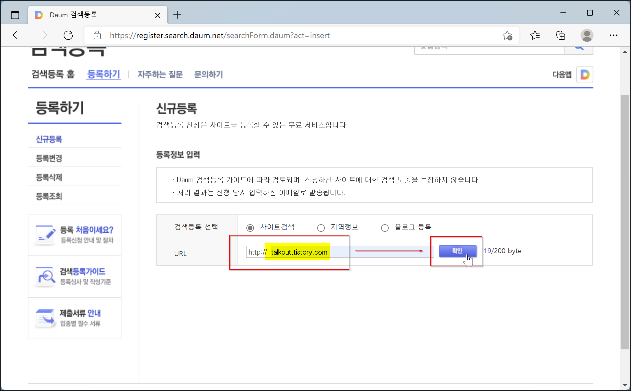 - 다음 검색등록 바로가기 : Daum 검색등록