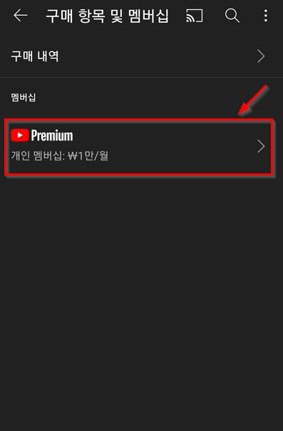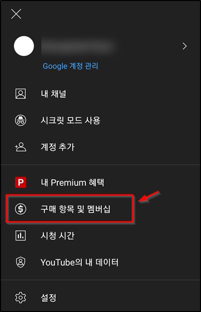 2. "구매 항목 및 멤버십"을 클릭합니다.