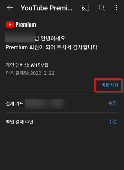 간단 Youtube Premium 구독 해지