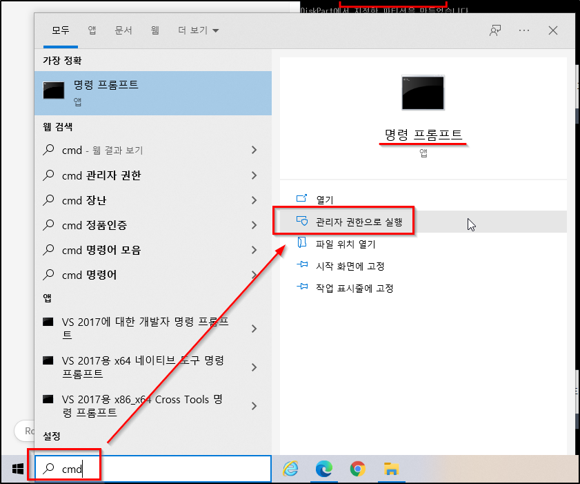 1. 명령 프롬프트를 관리자 권한으로 실행합니다.